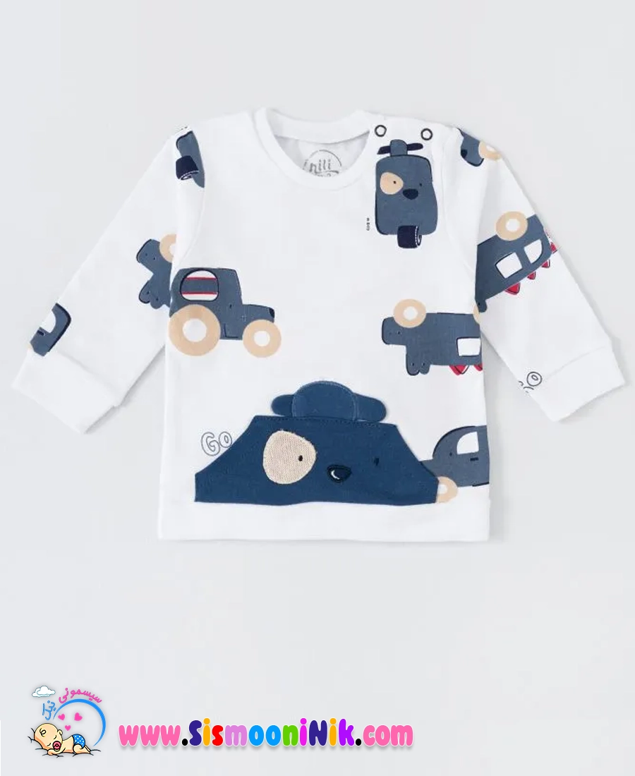 - قابلیت ست شدن با سایر لباسها: بلوز آستین بلند نیلی مدل ماشین به راحتی با انواع شلوارها، سرهمیها یا حتی دامنهای نوزادی ست میشود و تنوع ظاهری زیبایی ایجاد میکند.