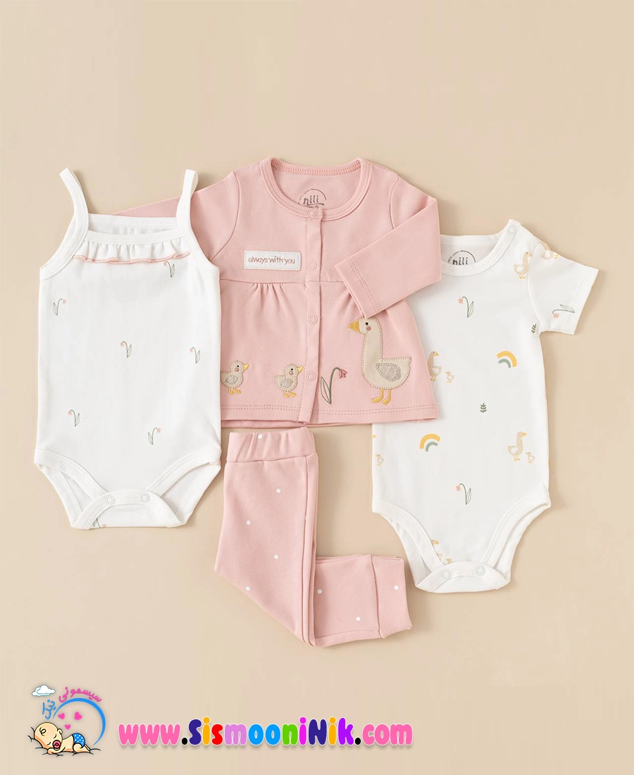 این ست شامل 13 تکه کاربردی از جمله سرهمی، بادی، شلوار، کلاه، دستکش، پیشبند، پتو و دستمال است که تمامی نیازهای اولیه نوزاد را برآورده میکند. تمامی اقلام این مجموعه قابلیت شستشو دارند و پس از هر بار شستشو، کیفیت و نرمی خود را حفظ میکنند. این ست میتواند یک هدیه عالی برای نوزادان باشد و بهعنوان بخشی از سیسمونی، گزینهای بینظیر به شمار میرود