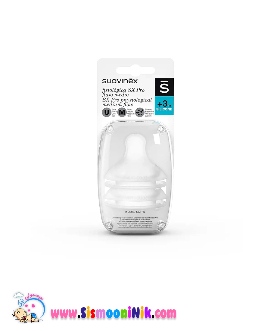 سر شیشه بادامی پرو 3+ ماه سواوینکس با استانداردهای FDA و CE تولید شده و بهطور ویژه برای تقویت رشد فک و دندانهای نوزاد طراحی گردیده است. این محصول نه تنها از «گیجی نوک پستان» جلوگیری میکند، بلکه با تقویت عضلات دهان، به بهبود مهارتهای تغذیهای و گفتاری نوزاد نیز کمک مینماید. سر شیشه بادامی پرو 3+ ماه سواوینکس با قابلیت شست و شوی آسان و مقاومت در برابر حرارت، انتخابی بهداشتی و بادوام برای والدین است!