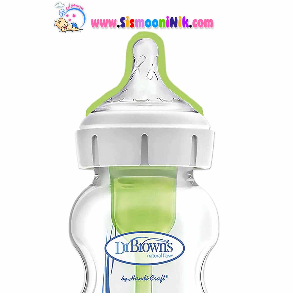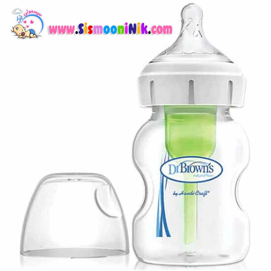 شیشه شیر پیرکس 150 میل دکتر براونز سری آپشن پلاس پهن آنتی کولیک دارای سرشیشه سایز 1 مناسب نوزادان تازه متولد شده است.