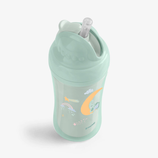 ، بدنه پروپیلن دو جداره، نی سیلیکونی نرم و مناسب ۸ ماه به بالا؛ موجود در رنگهای سبز و صورتی. مناسب برای استفاده روزانه و کاملاً ایمن برای کودک. مناسب خرید از سیسمونی نیک.