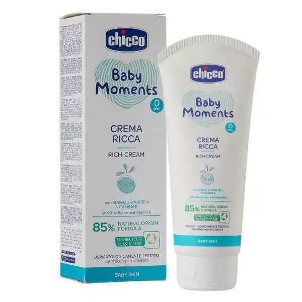چیکو ریچ کرم Chicco Rich Cream حاوی روغن های غنی از امگا 3 و ویتامین E هستش،بنابراین از خشکی پوست کودک جلوگیری میکنه و میزان رطوبت پوست رو هم در حالت متعادل نگه میداره.مامان های عزیز این محصول به صورت بالینی بر روی پوست های حساس تست شده، و تاییدیه های لازم رو گرفته،بنابراین بدون هیچ نگرانی می تونید از این محصول برای پوست کوچولوی قشنگتون استفاده کنید.ریچ کرم چیکو مناسب تمام فصول هستش و بهترین موقع استفاده بعد از حمام هستش