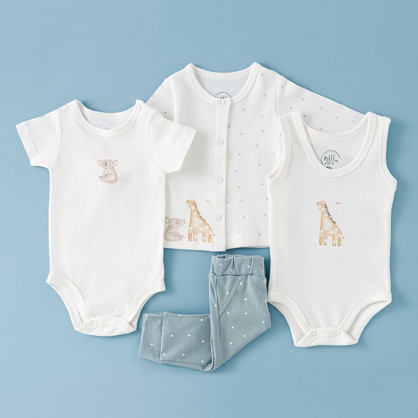 تمامی تکههای ست 13 تیکه نیلی مدل کوالا از پارچهی ۱۰۰٪ پنبهای تولید شدهاند که فوقالعاده نرم، تنفسپذیر و ضد حساسیت هستند. این ویژگی باعث میشود پوست حساس نوزاد در تماس با لباس، دچار التهاب یا خارش نشود. همچنین، قابلیت شستوشو در ماشین لباسشویی بدون افت کیفیت، نگهداری از این لباسها را ساده میکند.