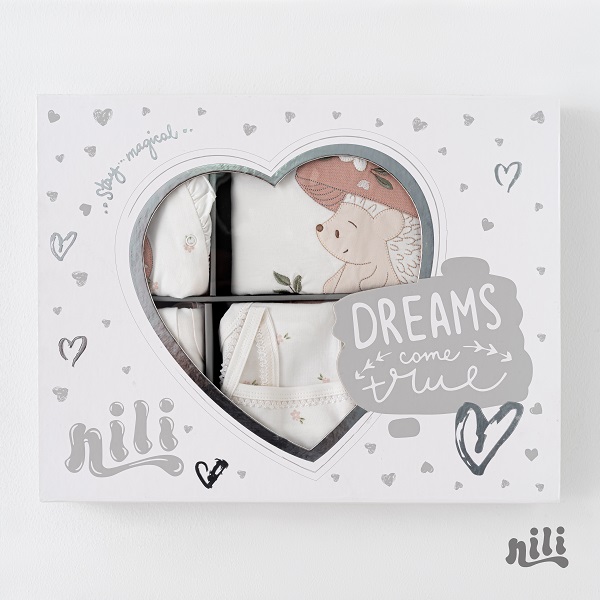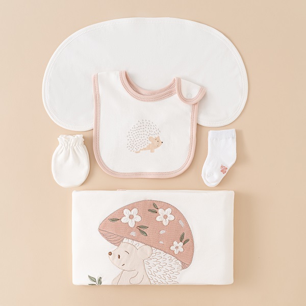 ست 13 تیکه نیلی مدل جوجه تیغی دختر شامل مجموعهای از لباسهای ضروری مانند : سرهمی، بادی آستین کوتاه، بادی رکابی، مانتو، شلوار، کلاه، دستکش، جوراب، پیشبند، پتو دورپیچ کلاه دار، آروغ گیر می باشد. این ست با طراحی هماهنگ و رنگهای زنده، تجربهای دلنشین و راحت برای نوزاد و والدین فراهم میکند.